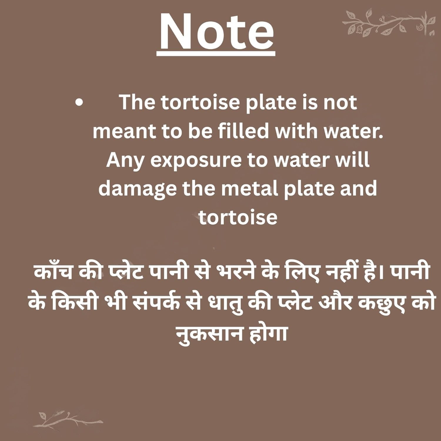 The tortoise plate is not meant to be filled with water. Any exposure to water will damage the metal plate and tortoise