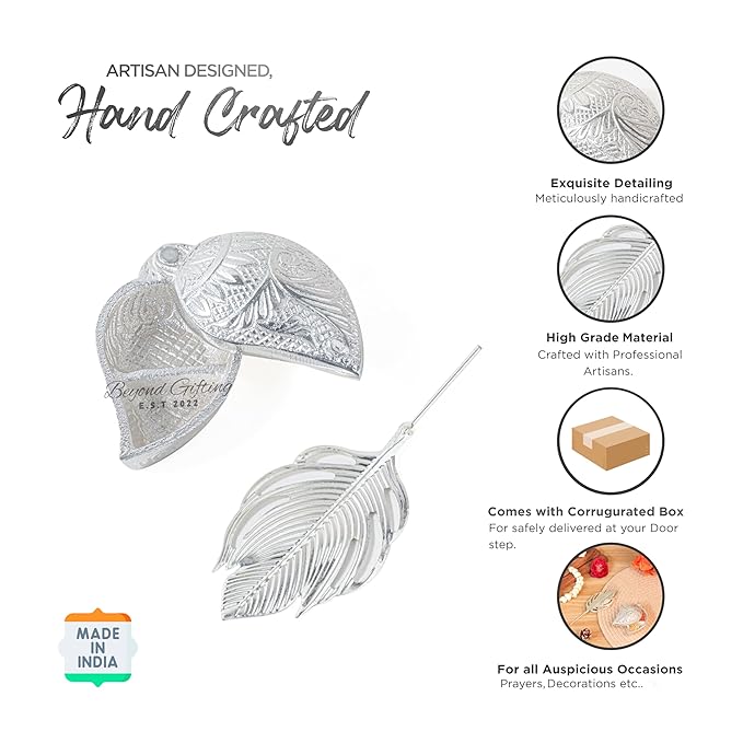 - MATERIAL: Crafted from premium German silver with intricate peacock feather design, perfect for traditional puja ceremonies