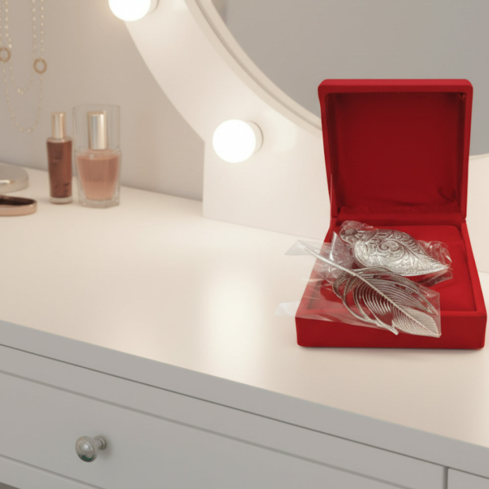 German Silver Sindoor Pot Set with Tilak Stick & Peacock Feather