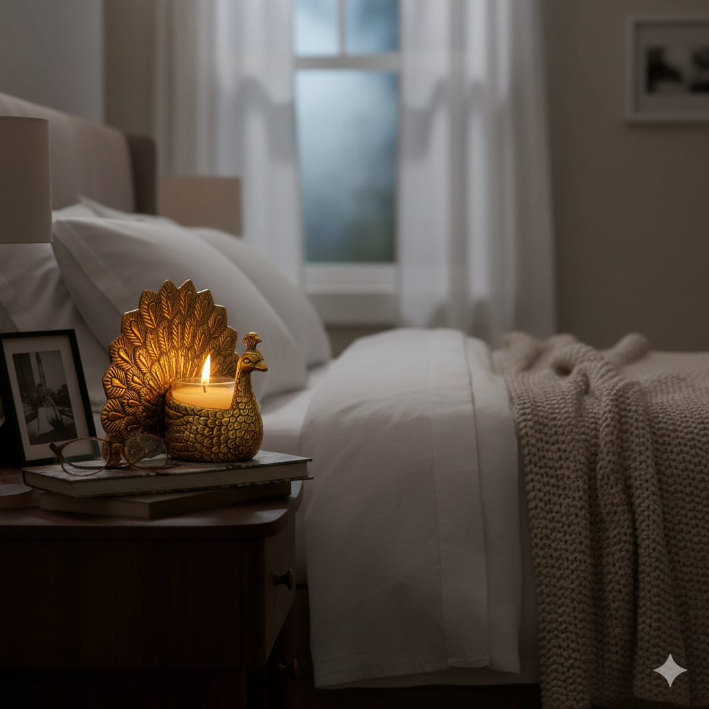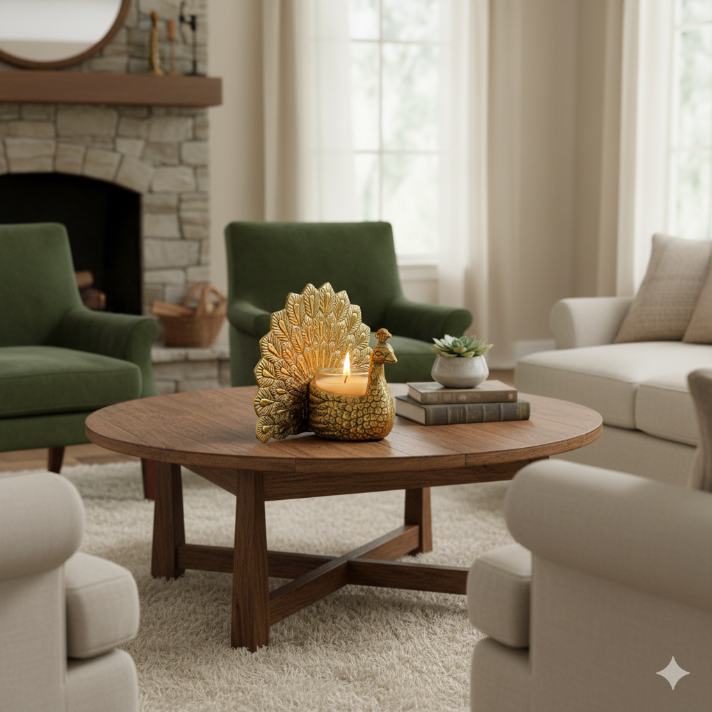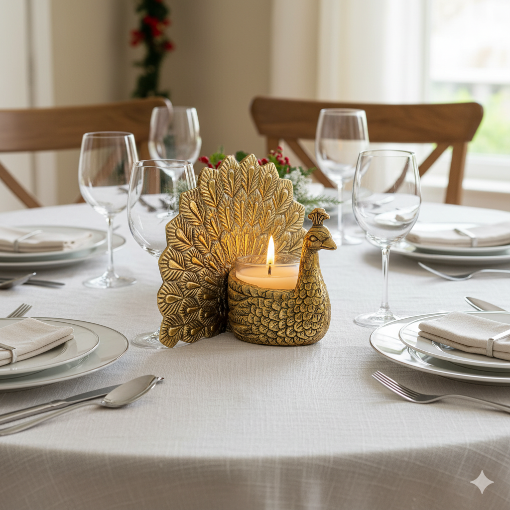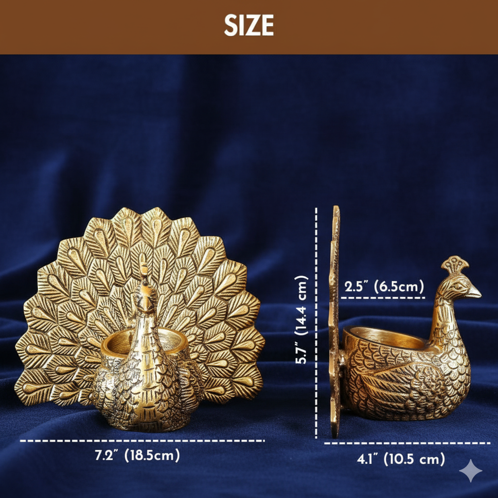3. Versatile Decor Piece: Ideal for various settings, our Handcrafted Aluminium Peacock Candle Holder is a versatile accent piece that effortlessly elevates any space. Whether gracing the living room, bedroom, or serving as a captivating centerpiece on dining tables, its presence adds a touch of refined elegance to every setting. Furthermore, it's perfectly suited for adorning mantels, shelves, or tables, enhancing any space with its graceful design and exquisite craftsmanship.