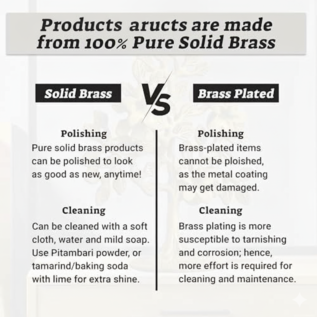 - Made from 100% pure brass with a rich golden finish. Durable, tarnish-resistant, and handcrafted to last for generations.